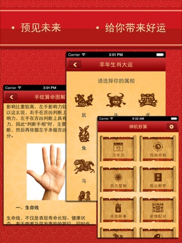 “算命 - 占卜大全”是一款简洁易用,极具中国风的占卜应用,是最受用户欢迎的占卜算命应用之一。它以中国五千年来所传承的周易人文思想告诉您命理变化的秘密,为您晓通命运,决断未来之事起重要帮助。