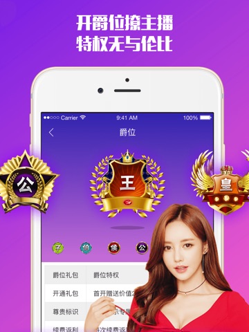 专属贵族爵位标识,超酷炫的特效,彰显壕的尊贵地位,让主播心系于你!