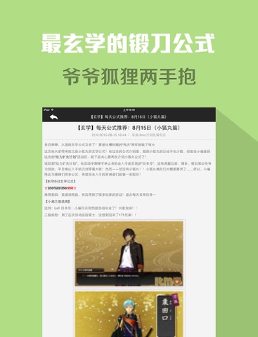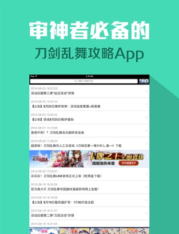 DMM页游《刀剑乱舞-ONLINE-》内容最全APP,刀剑男子全图鉴、刀剑公式配方、刀装公式,还有各种游戏技巧心得每天更新,帮助各位婶婶一夜脱非,获得心仪的刀剑男子!