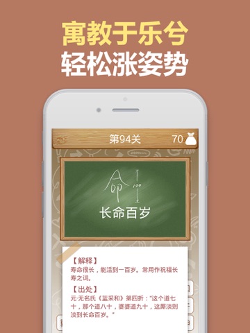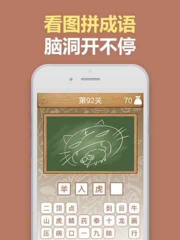 《学霸猜成语》是一款中文益智游戏,独树一帜的画风,诙谐有趣的题目,用一幅画或几个字来猜一个成语,巧妙的图与字的结合,让你苦思冥想后恍然大悟,开怀一笑!寓教于乐,绝对是老少皆宜的文字游戏佳品!