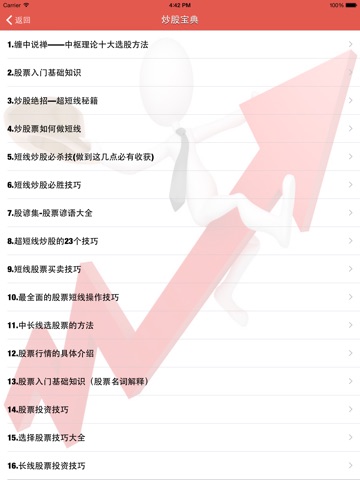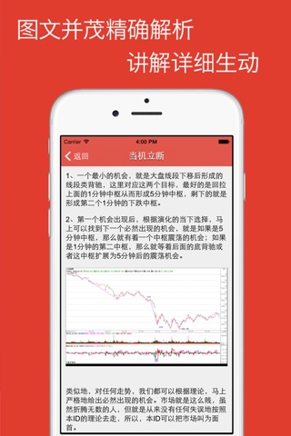 本软件包括股票入门,理论分析,交易方法与技巧,实践经验总结,名家真言等,非常实用,了解之后,还有进阶教程,教您如何在最短时间内找到理想之股。
