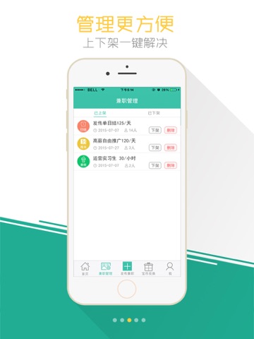 兼职信息上下架一键解决,及时查看报名及录用信息;