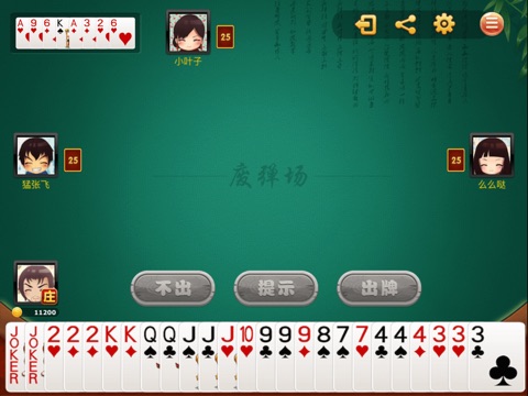 2、废王:增加了废瓜的房间,在牌局开始阶段决定承包的过程中,如果玩家轮到选择权但最终没有坐庄则该玩家手上的大小王全作废。
