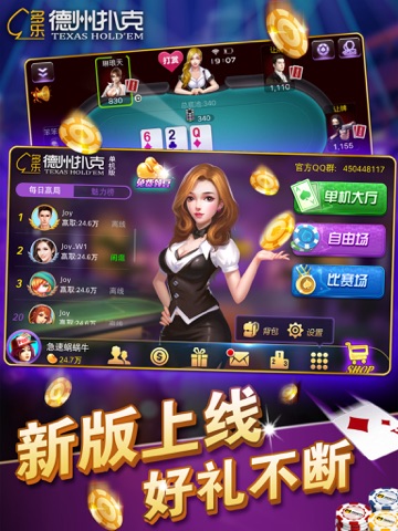 无需注册、无需联网就可以玩的德州扑克,当然也可以联网和真人玩啦,还有各种拿大奖的比赛呢。