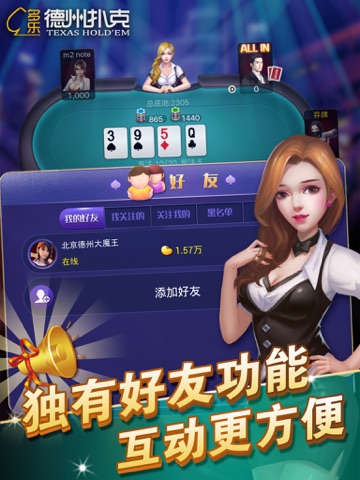 · 好友功能,可关注邀请好友,可以进入好友的牌桌