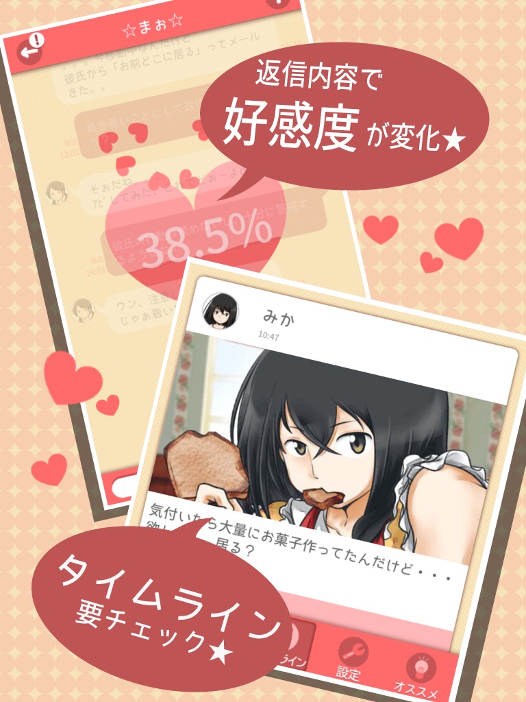 本当なら☆2つにしたい所ですが、甘めに評価しての☆3です。 恋愛相談とある通り、主人公が各種ヒロインと結ばれるわけではなく、恋仲を取り持つ役どころ。 主人公の性別も男女選べるので、幅広い人が楽しめる。 内容もそれなりに面白く、とりあえずエンディングを見たくなる。 と、ここまでは良いんですが、、、 広告が凄まじく鬱陶しい。LINEで恋愛相談をするという形をとっていますが、返信を終えた後別のキャラに切り替えようとすると広告。基本画面切り替えると広告。 誤爆もしやすく、かなりストレス溜まります。 エンディングは3種あり、クリアすると最初から会話できるようになります。 しかし、一度目のプレイは良いのですが、二度目以降のプレイだと、いちいち返信待つのが億劫。 二度目以降は高速返信とかあれば良かったが、あのペースだと大概の人は2周目クリアする前に消しちゃいますね。 良い所もあるんですが、悪い所が目立ちすぎて、評価を上げる気にはならない作品。 ここの別作品に良作がいくつかあるという事もあり、贔屓目に見て☆3、という所です。