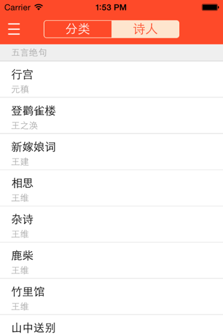 本应用精选了320首唐诗,每首唐诗包括唐诗内容、注释、译文、赏析、诗人简介。