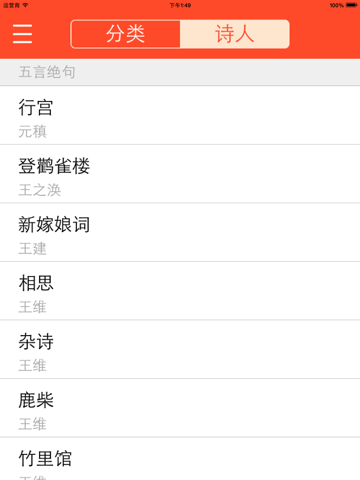 界面简洁,操作简单、实用。搜索功能帮助用户迅速定位唐诗,收藏功能让用户收藏自己认为重要的诗,索引功能方便用户浏览。