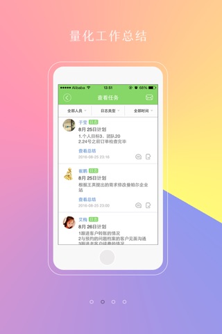 1. 基于组织汇报关系由上至下解决老板、领导、员工的企业目标分解、工作追踪考核;