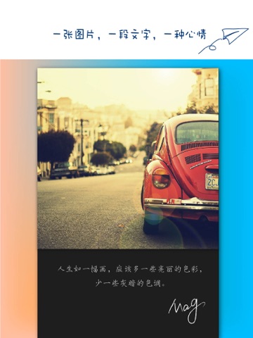 美格,一款极具特色和文艺的图片加文本的工具摄影应用。记录生活,写下心情,创作属于你的独特纪念册。