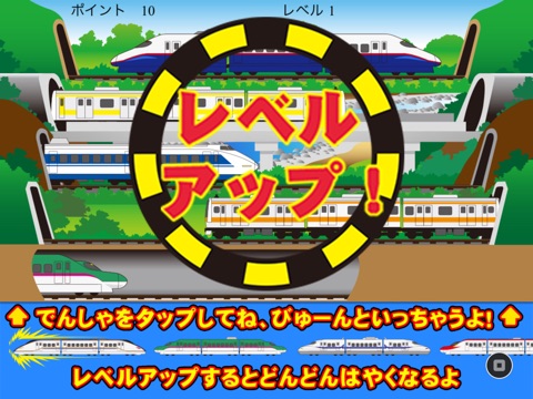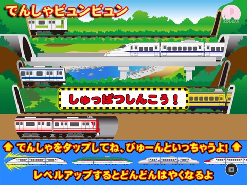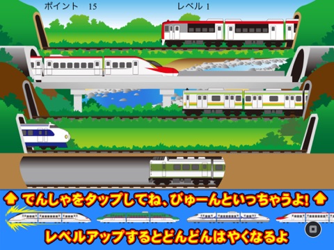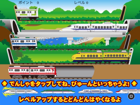 It is a play that taps trains, bullet trains, steam locomotives, linear motor cars, freight trains, etc. that come out from the left and right.