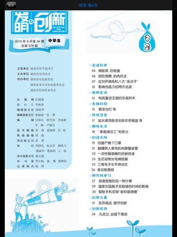 《发明与创新•中学生》是由湖南省科技厅主管的中国首家发明创新专业期刊、全国优秀期刊、一级期刊、青少年科技创新辅导期刊。杂志主要介绍最新的科技和发明信息,分析并鉴定与日常生活相关的一些科学传言和科学小实验,展示学生科技创新的作品、研究性学习的成果,推荐在科技创新方面有一定成就的学生、老师和学校,分享老师或学生科技创新的经验或心得,播报校园各类科技新闻和活动,探究国内外奇闻异事和未解之迷,并为学生提供心灵美文和心理问题咨询。