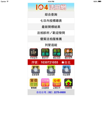 104法拍網提供全台法拍屋資訊,除司法院原始公告外,更有VIP功能,地政資料、地籍圖資、拍賣歷史記錄,是協助您標購法拍屋的好幫手!