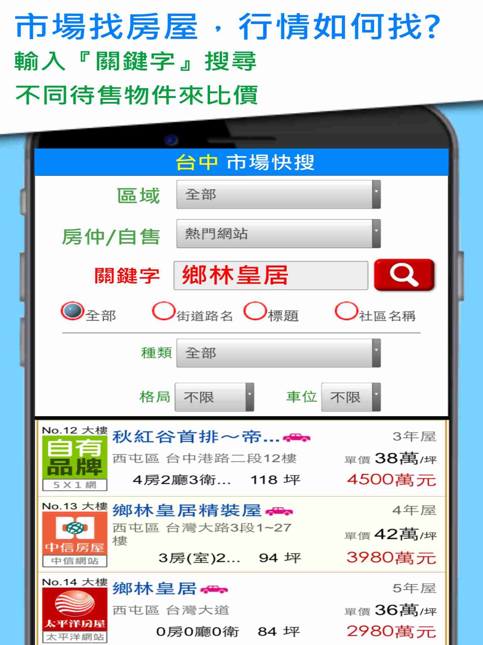 結合內政部房地產買賣實價登錄、法拍屋投標成交實價查詢,提供每戶房屋社區名稱,及完整社區市調資料,如同棟社區成交統計、社區相片、都市計劃圖及附近學區環境。指標大樓及焦點透天屋為一年內新屋銷售成交統計,一目了然,即時掌握房市動態。