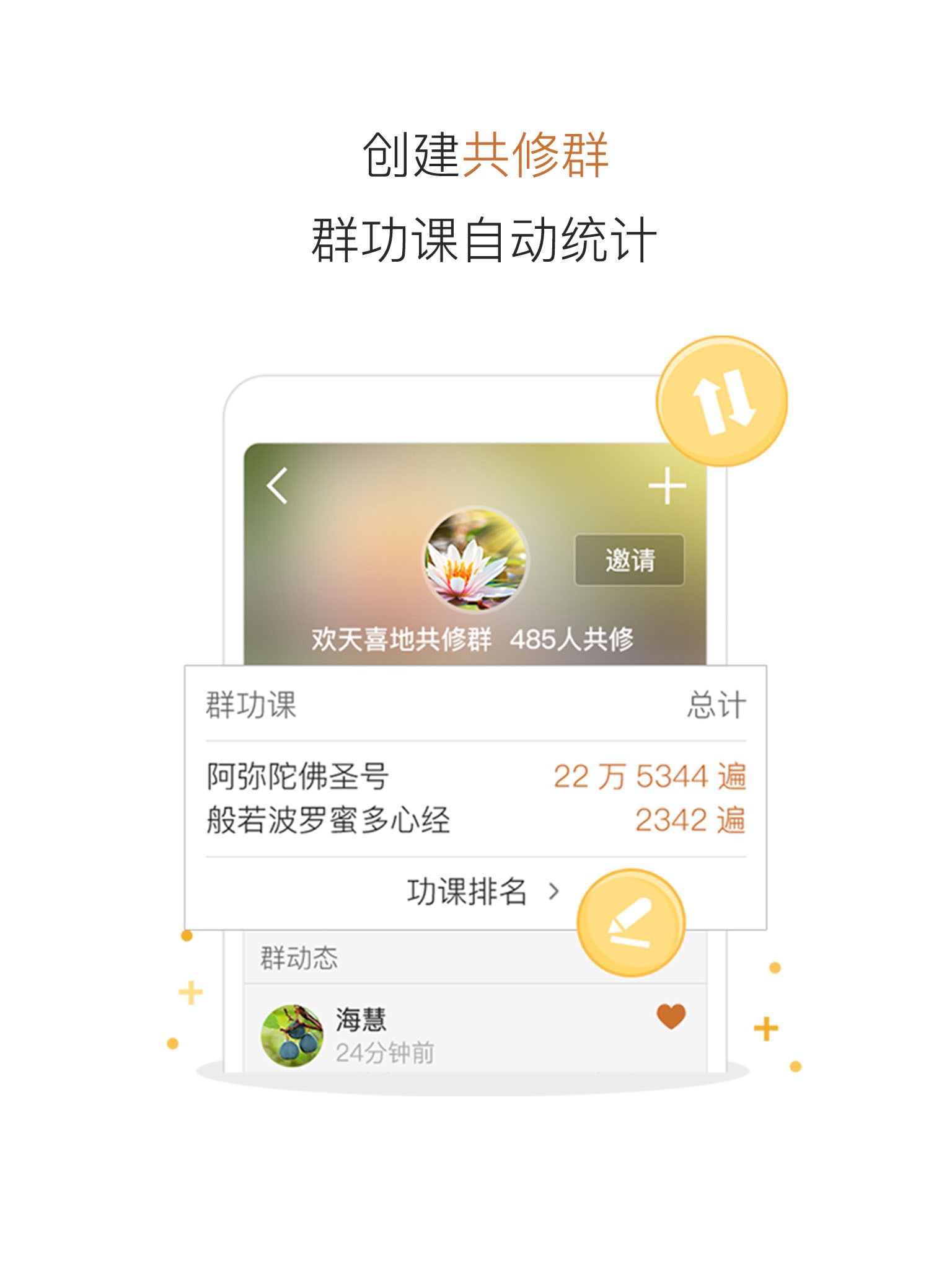 - 与共修群师兄一同修行 自动统计佛经念诵总数和排名