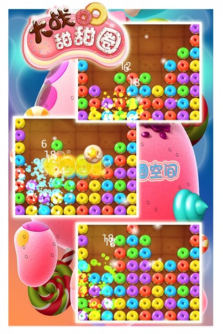 1、看到相同颜色的糖圈圈(横列和纵列),2个及2个以上即可点击消除;