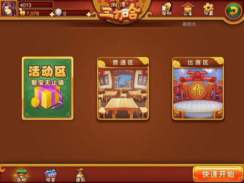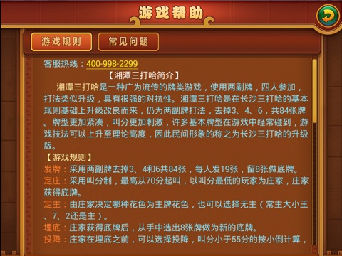 湘潭三打哈使用两副牌打法,去掉3、4、6,只使用84张牌,牌型更加紧凑,玩家报副及留守均可明示。