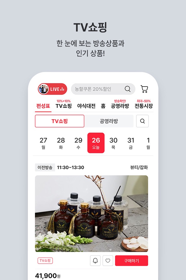 - 모바일 라이브 방송에서 실시간으로 소통하며 좋은 상품을 득템하세요!