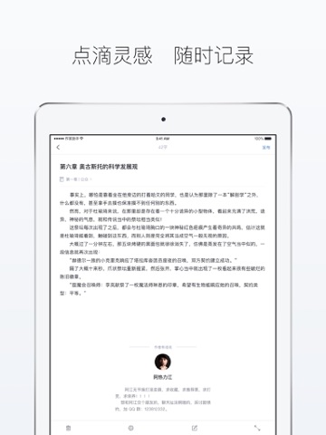 ◆ 快捷发布:写完直接一键发布至起点中文网、QQ阅读等阅文站点,就此告别复制粘贴
