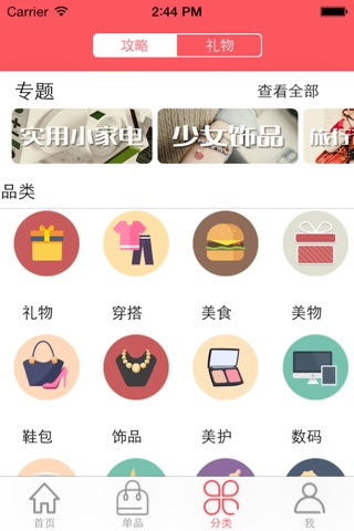 这是一个分类齐全的礼物APP ,从衣服到家居,从美妆到美食,一切美好的小物都是一份礼物.