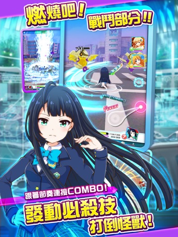 只要單指操作,就能輕鬆移動和攻擊! 隨著節奏點擊畫面連接COMBO,就能施展必殺技把BOSS打飛出去!!! 你的節奏感將引導她們獲得勝利!