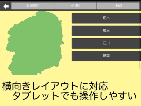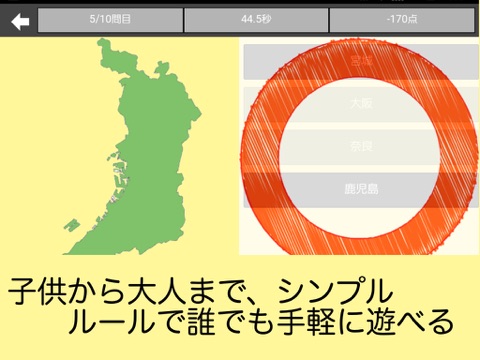 シンプルなインターフェースの、日本地図クイズアプリです。