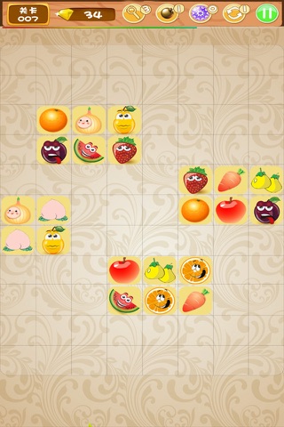一款水果主题的连线游戏,只要将相同的水果用三根以内的直线连在一起就可以将之消除,规则简单容易上手。游戏速度节奏快,画面清晰可爱,适合细心的玩家。