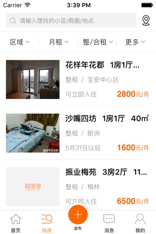 *精准搜索:支持小区名称、区域、租金、类型、户型等多维度搜索和综合搜索;