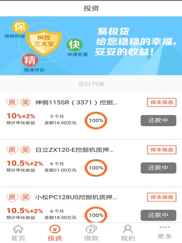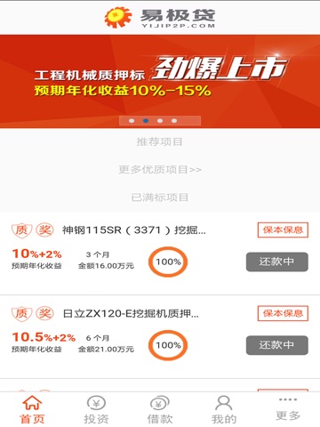 易极贷是易极旗下互联网金融平台,系国内首家工程机械设备垂直领域的P2P平台。依托工程机械领域第一拍卖品牌易极拍,基于其强大的风控和资产快速处置能力,为有资金需求的行业用户借款人和有理财需求的出借人搭建一个稳健、轻松、透明、便捷、安全的网络互动平台。以创新的金融产品服务于工程机械行业,让用户更温暖,让行业更美好。