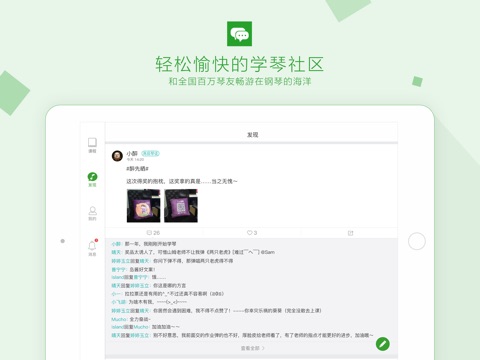 3.来自全国百万琴友组成的专业性+娱乐性的知音社区,有问必答,为你的学琴之路答疑解惑,带你成长带你飞~~