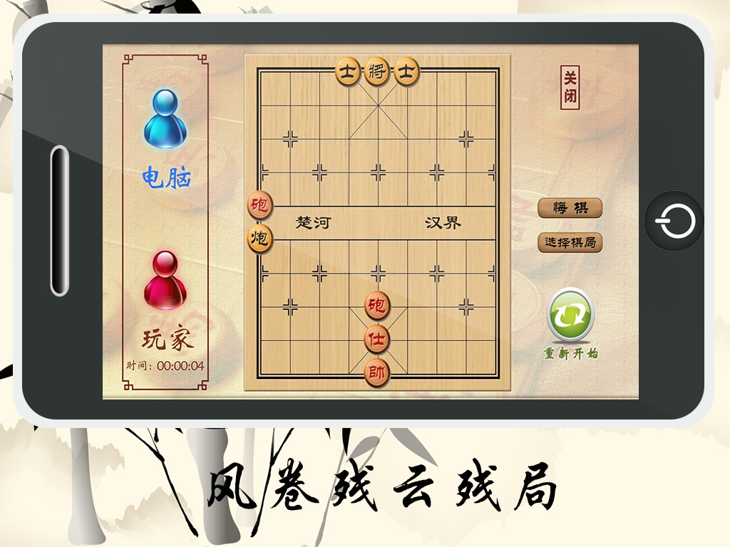 传统中国象棋不仅支持人人对战、人机对战,还有40多个经典残局供您练习。