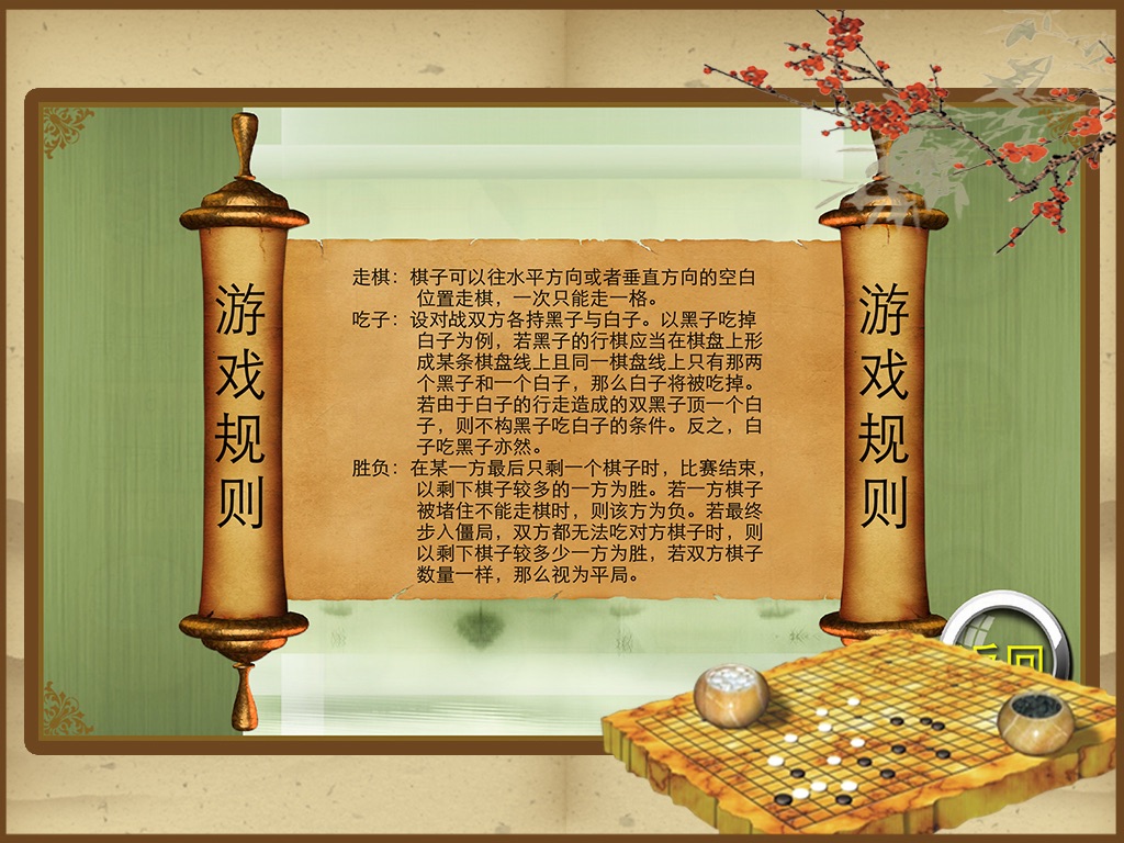 六子棋是流传于中国民间的一类版图游戏。是一种双人对弈搏杀的一种游戏,交战双方棋子数均为六 颗,故称六子棋。六子棋的棋盘为3乘以3的方格。棋子可信手拿来,只要互相区分即可。