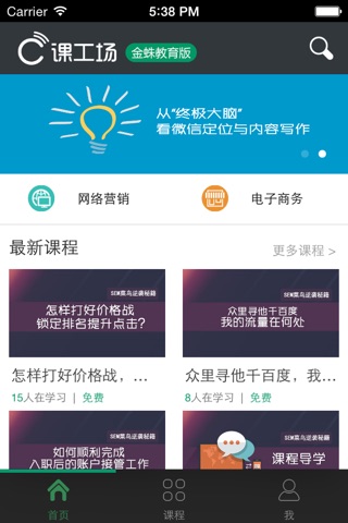 课工场金蛛互联网营销学院是由课工场和嘉华金蛛共同发起成立,创办于2013年,致力于新媒体营销、搜索引擎营销、国内电商、跨境电商等人才的实战技能培养。