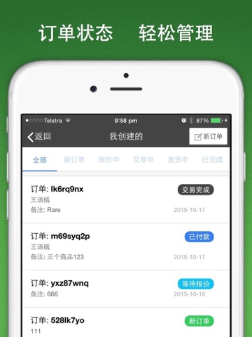- 一键发送订单给微信好友,直接查看订单,进行报价,分享订单