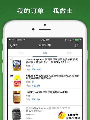 - 代购用户最为信赖的代购工具应用,不断丰富的商品品牌,分类和信息,目前已经超过了1万个澳洲本地的热门营养保健品,婴儿奶粉,个人护理,美妆产品和特色零食等