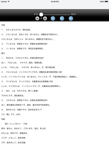 课文内容共25课,包含单字、句型、例句、会话、练习、问题和文法解说等,内容由浅至深,学完25课,已接近中阶学习者的程度。