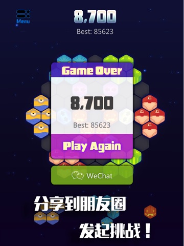 《神奇的六边形》是一款让人完全停不下来的魔性游戏,本质上是俄罗斯方块的六边形版本。丹麦数学家皮埃特·海恩(Piet Hein)在1942第一次发明了“六贯棋“。六贯棋有一个正六边形组成的棋盘,构成了四条边,相对的两边填上同一个颜色。双方轮流下,每次一方占领一处空白格,然后放上自己颜色的棋子。最先将棋盘属于自己的颜色的两边连成一线的一方为胜。六贯棋没有平局,它总有获胜的一方。《神奇的六边形》是游戏作者在设计上重新定义了“六贯棋“发明的一个游戏。
