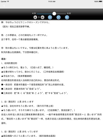 - 增加了所有课文(基本课文与应用课文)的中文翻译,翻译在每句的后面,便于新手中日双语对照学习;