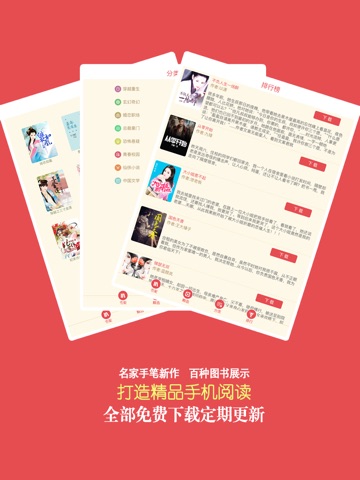 特有的“离线下载”功能可以把你喜欢的书一键下载至书架,并在书架进行操作管理。此款应用同步网站几千万本小说,言情、总裁、宫斗、穿越、女尊、出版等一应俱全。离线阅读,想看就看,欢迎下载。