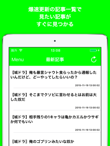 1タップの超簡単操作で最新の城ドラニュースがサクサク閲覧可能!