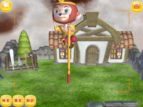 1.AR模式,点击主菜单的“绘画”按钮,通过摄像头扫描绘画好的作品,相应的3D动物会牢牢的出现在绘画纸上,点击屏幕上的3D动物实现互动,中英文发音、讲故事的形式让学习变得更有趣。