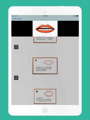 汇集单元音双元音、清辅音浊辅音,标准的口型指导,界面简洁,操作简单。