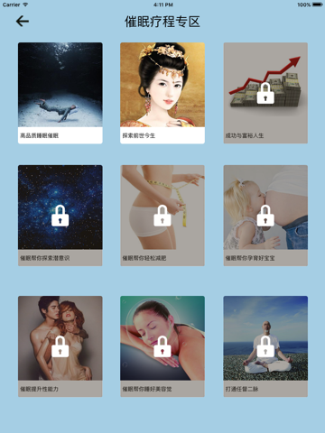 2、催眠帮你轻松减肥:对于想减肥的人,一边轻松入眠,一边吸收对你价值非凡的指令,将脂肪细胞优化,自然而然养成符合身心灵健康之道的生活模式。无论男性女性,都适合使用,帮助你以最自然的方式,拥有理想的体重与身材。