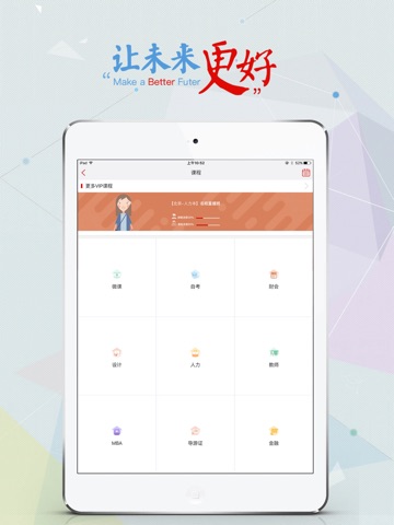 2、VIP课程:提供专业的成人自考、职业资格证书培训课程,热点、难点、易错点一网打尽。同时,随课附带相应的长达一年的课程表、学习资料、课件、随堂考、录播课程;即使没有时间参加直播课程学习,还可以利用碎片化时间、通过手机随时随地进行学习。
