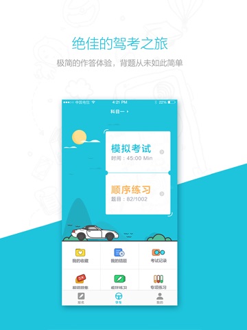 1、 模拟考试:严格按照科目一考试流程、时间,考前多联系,考试有把握,松果学车为你提供对视力有保障的字体合颜色,让你随心所欲,随时随地安心做题;