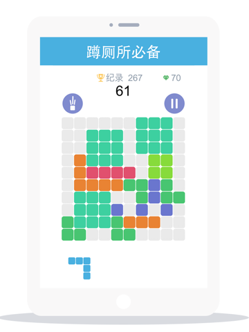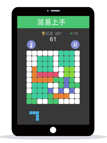 带着儿时的感觉,鲜亮的色彩搭配,10*10棋盘格,彩色方块组合随意手动放置,只要凑满一行或者一列就可以消除,诚意之作,一起玩吧。