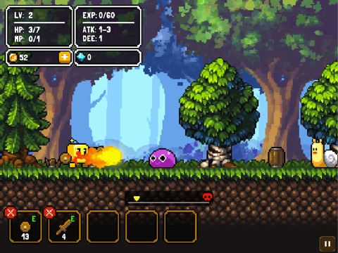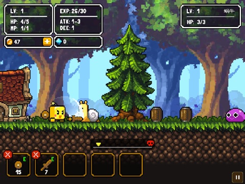 每次开始关卡时,角色都会从头开始(等级保留)初始玩家会带有木剑、木盾和一小桶泡面。好好利用这些道具是初期的生存之道。打倒怪物会掉落金币和经验,积累经验等级会提升,主角的各项属性也会提升。