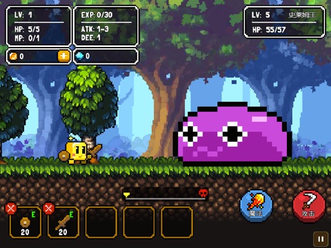 攻击:点击攻击按钮就会有效攻击1次。(路上会有可以打碎的罐子,里面可能会有金币哦!)。
