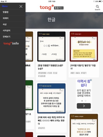 한글에 대한 모든 것(맞춤법, 속담, 외래어, 사자성어)을 카드 퀴즈로 풀어볼 수 있는 한국인의 필수 앱!