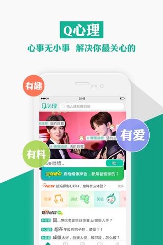 【Q心理】是一个00后玩的情感吐槽、可养成的心理社交APP。没处可说的话,这里有人听;没处可吐的槽,这里有人兜;无处可解的困惑,这里有人应。世界再大再闹我也不怕,一个人又怎样,我有我的秘密基地。